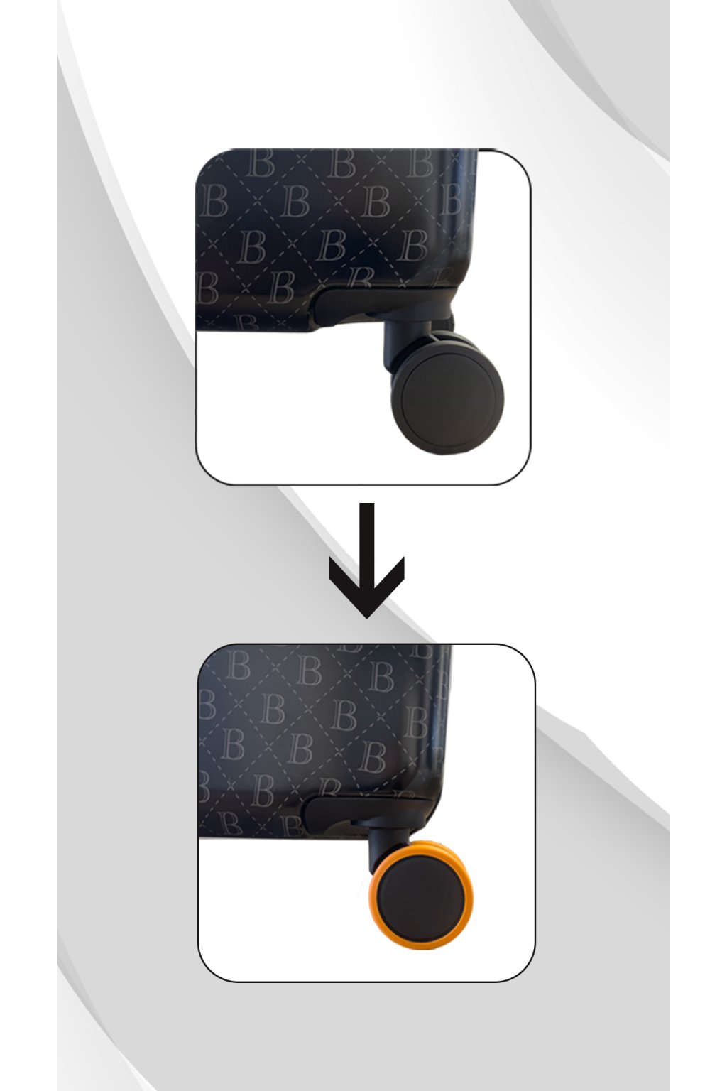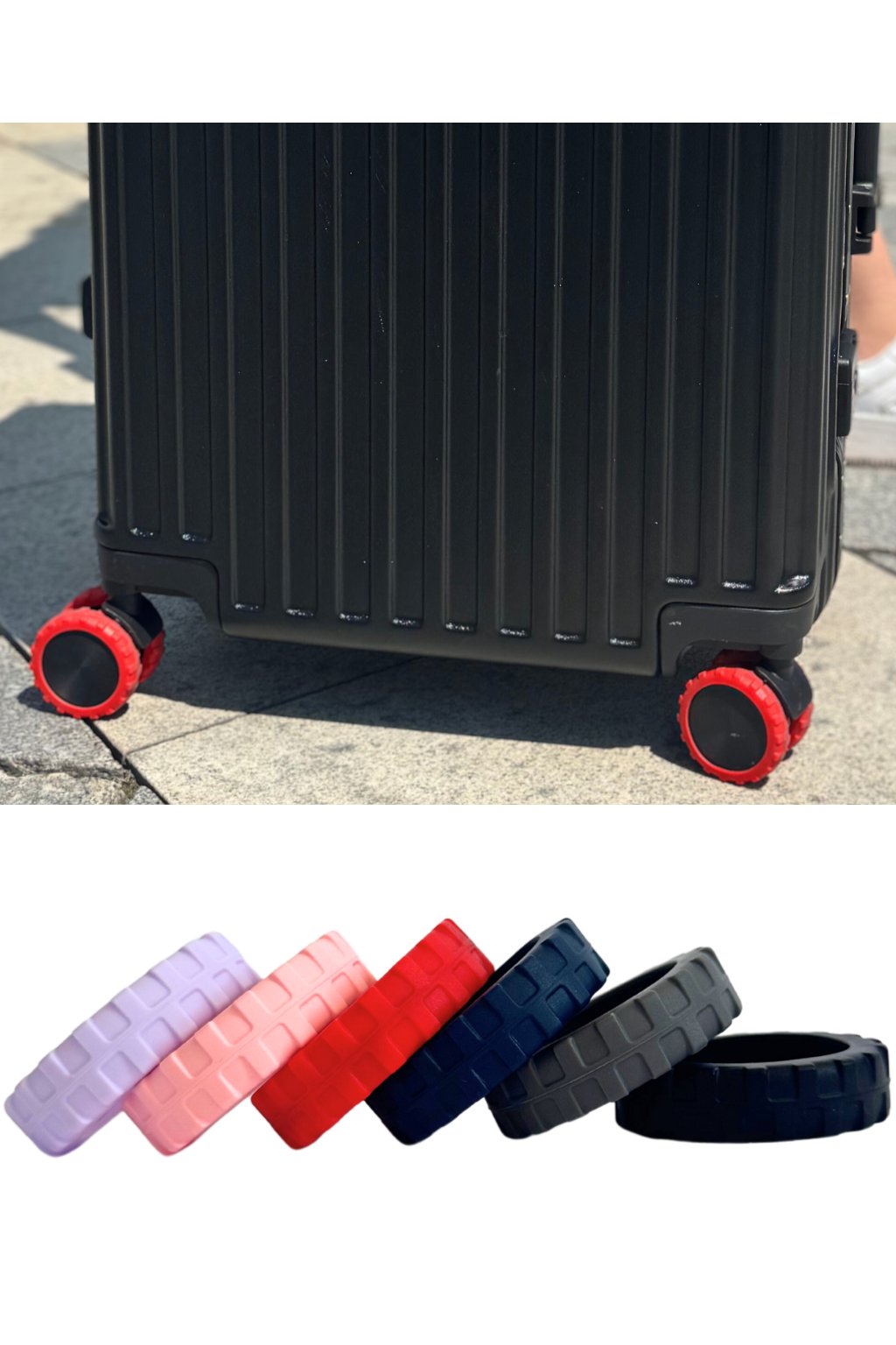 Tyto barevné silikonové návleky jsou určeny pro dvojitá kolečka cestovních kufrů. Chrání je před poškozením, tlumí hluk při jízdě a zamezují nechtěnému znečištění podlah v domácnosti či hotelovém pokoji.