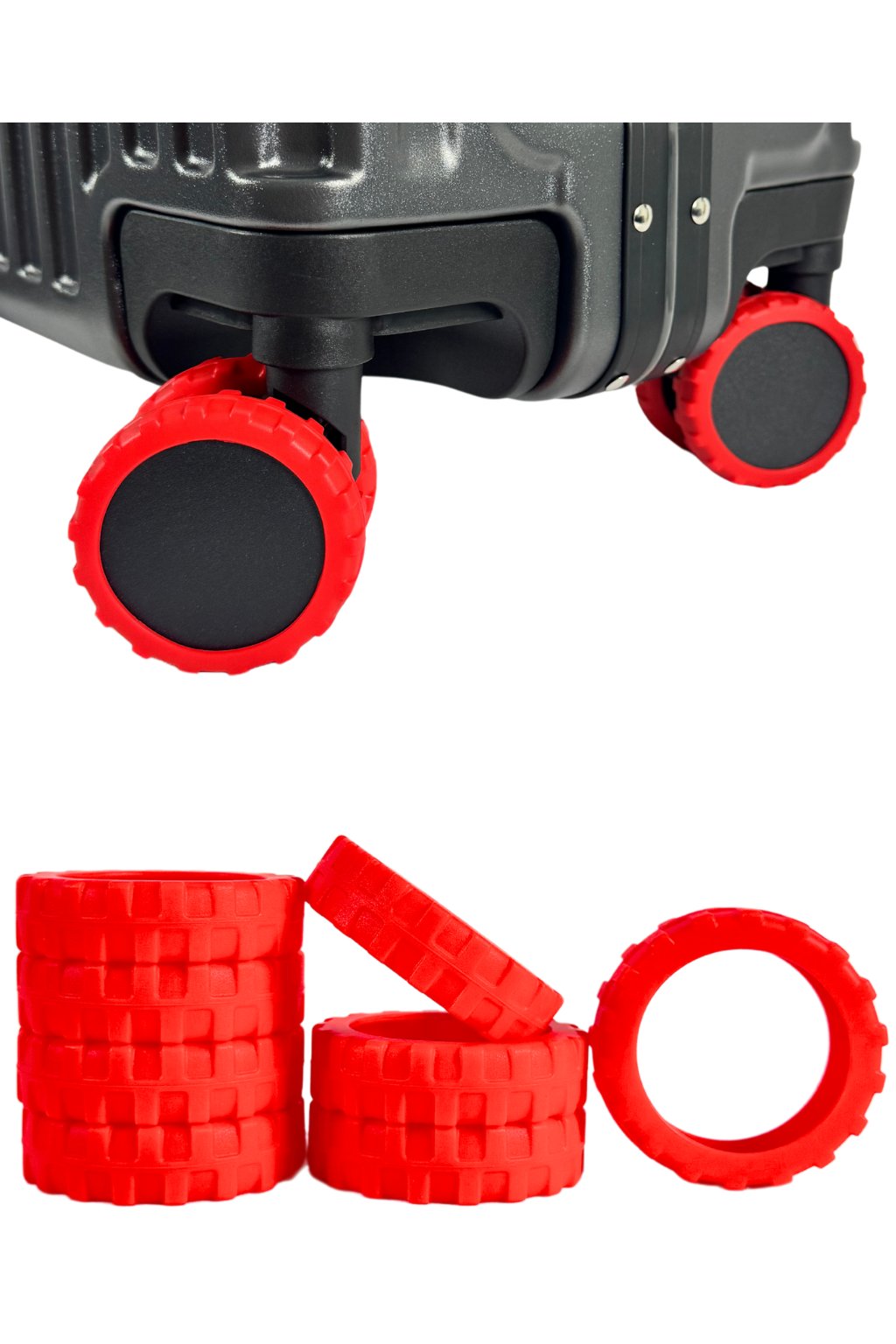 Ochranné silikonové návleky na dvojité kolečka kufru BERTOO - 8 kusů červené