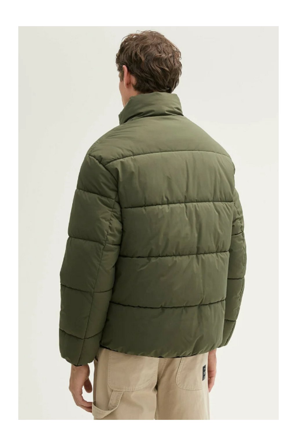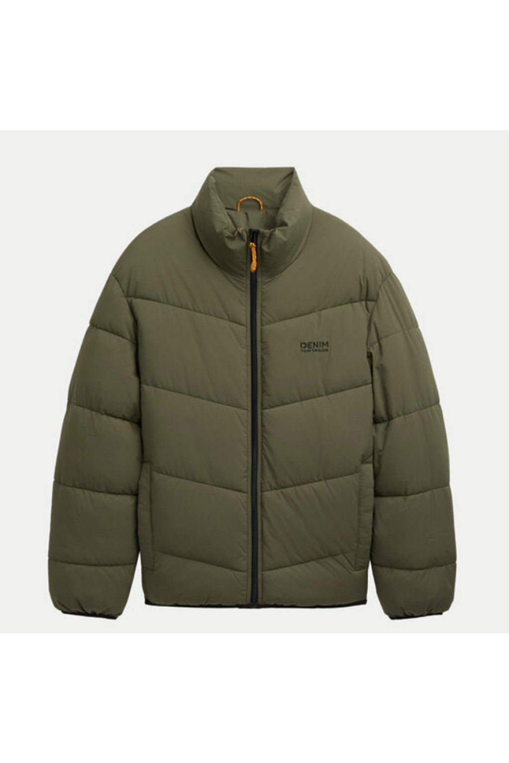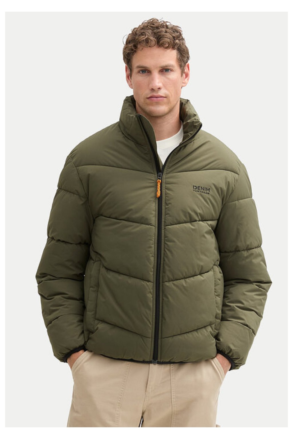 Pánská prošívaná zimní bunda značky Tom Tailor v khaki barvě. Bunda má dvě přední kapsy a zapínání na zip.